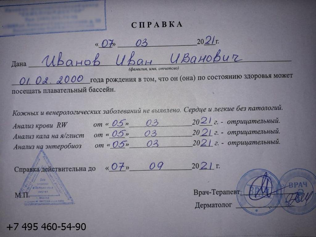 Купить справку в бассейн взрослому по доступной цене